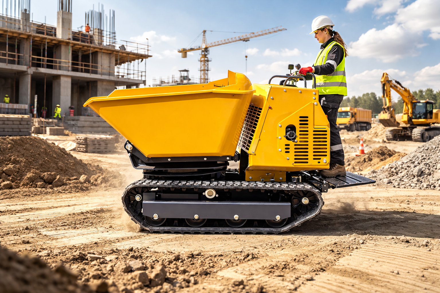 YH-1200 Paletli Taşıyıcı: Güçlü benzinli motoru ve 180° döner damperi ile 1200 kg’a kadar yük taşıma kapasitesi sunan, her zeminde yüksek performans ve verimlilik sağlayan dayanıklı paletli taşıyıcı. İnşaat ve ağır yük işleriniz için ideal çözüm